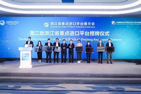 | 11月7日,中國第四屆進口博覽會暨浙江省重點進口平臺推介會在上海舉辦。會議發布新一批浙江省進口貿易促進創新示范區和26個浙江省重點進口平臺,寧波聯合集團進出口股份有限公司被評為浙江省重點進口平臺之一。